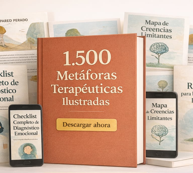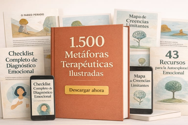 Revoluciona tu enfoque terapéutico con poderosas metáforas que simplifican conceptos complejos y despiertan aprendizajes profundos sobre las emociones. Este material exclusivo será tu herramienta diaria para sesiones más impactantes.